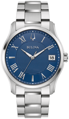 Pay homage to simpler times with the Wilton men’s timepiece from the Bulova Classic collection. This straightforward yet elegantly updated, two-tone watch features a brushed gold- and silver-tone stainless steel case that holds the lustrous silver-white, 3-hand dial with sunray detail, calendar, polished Roman numeral markers, and a domed crystal. The gold- and silver-tone stainless steel bracelet features a deployant buckle with pushers for easy accessibility. Get back to basics in style with the classic Wilton from Bulova.