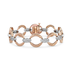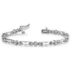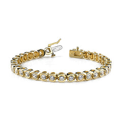 This bracelet gives the illusion of diamonds being held in swirl shaped links.